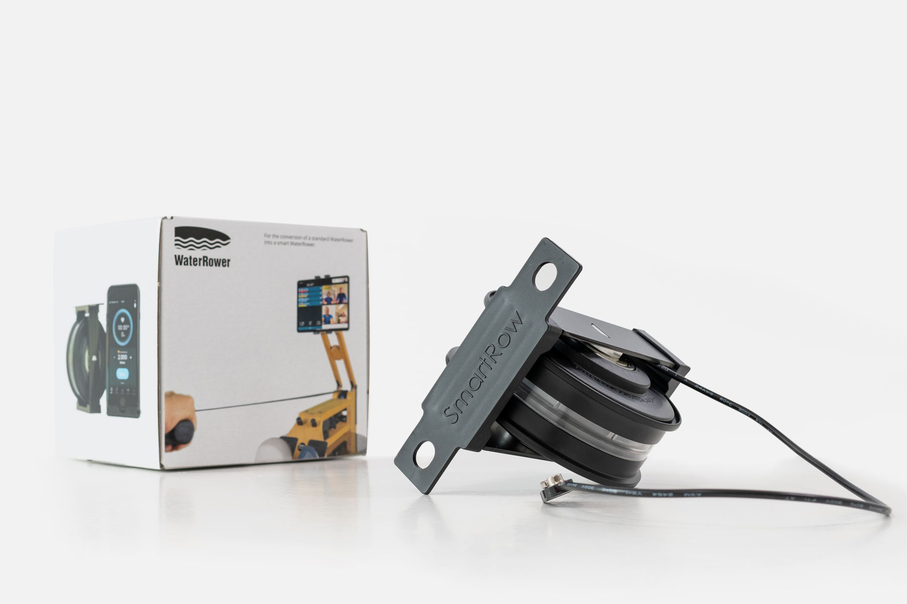 SmartRow delivers 100% comparable rowing training data - completely independent of the monitor, directly wirelessly to your smartphone or tablet. The SmartRow pulley is installed in place of the first pulley in the WaterRower and sends the rowing data to the SmartRow app via Bluetooth.